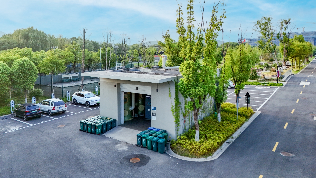 本项目为中国美术学院(良渚校区)1吨/天餐厨垃圾处置项目,项目采用豪运国际环保自主研发的常温好氧生物水解技术及配套设备,以就地处置模式满足学校每天的易腐垃圾处置需求,既直接减少了二次长途转运,降低了学校易腐垃圾处置费用,又避免了易腐垃圾的腐败发臭及转运过程中的跑冒滴漏,为教职工及学生们营造了一个绿色园区环境。