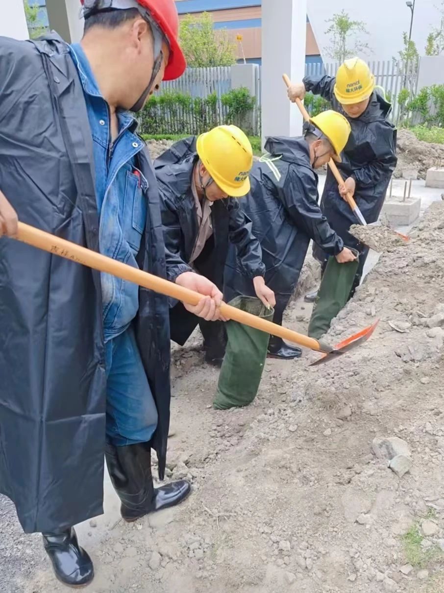 演练以“域内普降大雨,短时累积降雨量超过100mm,项目现场路面排水不畅,导致积水沿除臭车间东侧卷闸门倒灌进车间”为背景。接到预警后,钱塘项目应急领导小组迅速启动应急预案,应急防汛队员按照既定方案,迅速集结并展开抢险工作。他们通过接力的方式,迅速堆砌沙袋,建立起防倒灌隔离墙,有效阻止了雨水倒灌的可能。整个演练过程紧张有序,参演人员配合默契,展现了防汛应急力量的高效协同。